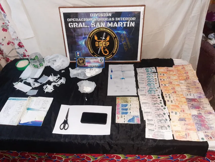 En el domicilio investigado, donde reside una mujer de 30 años, hallaron varios envoltorios de cocaína, con un peso total de 57 gramos, 130.220 pesos en efectivos, un celular, un cuaderno con anotaciones y una tijera.