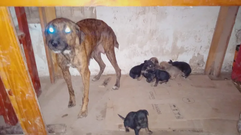 "Ella estaba sola, muy embarazada. La rescatamos y gracias a Dios tuvo a sus bebés bajo resguardo. Ahora los estamos cuidando y buscamos familias responsables que los adopten", contó Marisela, quien también tiene a su cuidado dos perras adultas que fueron rescatadas de un búnker en Villa Federal y que también necesitan un hogar.