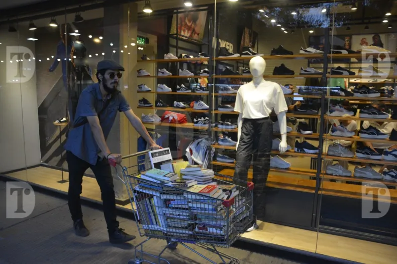 Nahuel Tomás decidió dejar su rutina de oficina detrás de una pantalla para llevar su pasión por la lectura a la ciudad a través de un carrito de supermercado como biblioteca ambulante.