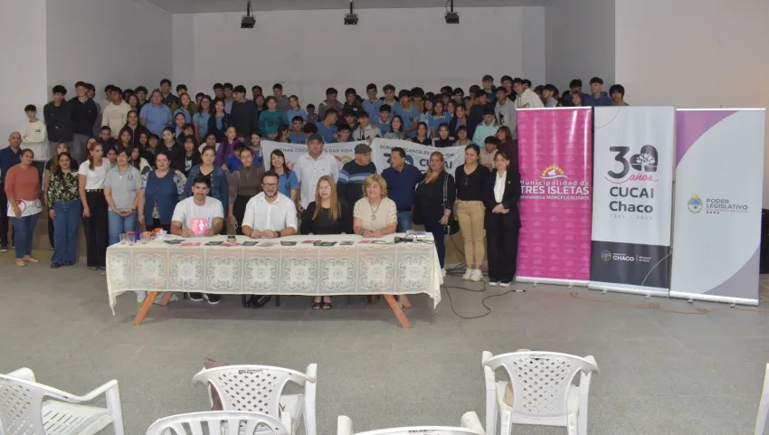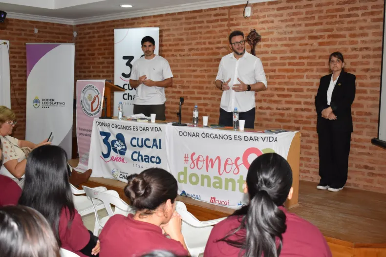 Representantes de la Legislatura y de CUCAI Chaco viajaron a la localidad de Tres Isletas para visitar al C.E.P. N° 12 "Juan Bautista Alberdi" y al Colegio U.E.G.P. N° 128 "Jesús María". En toda la provincia, se llevan adelante las charlas "Hablemos de Donación" que es una actividad para el público en general, abocada especialmente a la comunidad educativa para promover el mensaje de concientizar sobre la importancia de donar órganos.