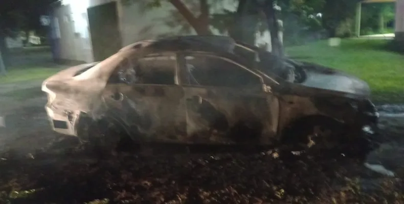 Un auto se incendió dentro de un complejo turístico y se dañó completamente