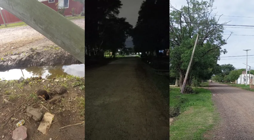 El reclamo no se limita solamente al estado de las calles. El vecino también denunció graves problemas con el alumbrado público y la peligro en las instalaciones eléctricas en la zona. "Sacaron dos postes de madera que se habían caído, pero dejaron cables que circulan con 13.200 voltios muy cerca de los balcones. Nosotros tenemos que tener cuidado hasta para salir de nuestras casas".