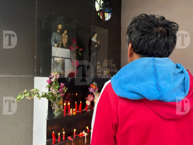 También, al costado de la parroquia hay un santuario este día repleto de velas y flores rojas que los fieles ofrecen a la virgen.