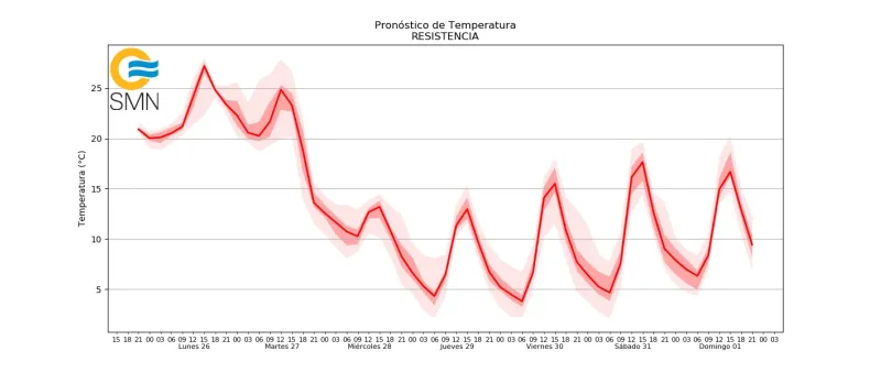 Sin embargo, el alivio llegará recién el miércoles, porque, según la meteoróloga, "el martes 27 aún se registrarán lluvias y tormentas, acompañadas de alta humedad, como parte del proceso de cambio de masa de aire. Desde el miércoles 28, ya con el frente frío instalado, se espera tiempo más estable y seco, con cielo despejado, ráfagas del sur y temperaturas muy bajas. Incluso podrían registrarse heladas matinales en zonas rurales del interior del Chaco".