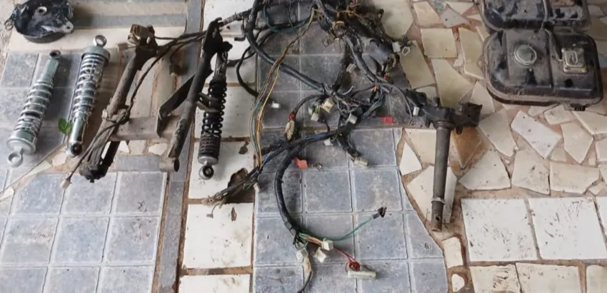 Durante el procedimiento, los agentes lograron el secuestro de varias partes correspondientes a la motocicleta robada, incluyendo dos tanques de combustible, tres amortiguadores, un horquillón, un cristal, y otras piezas de interés. Asimismo, fue incautada una réplica de arma de fuego tipo pistola, envuelta en cinta negra.