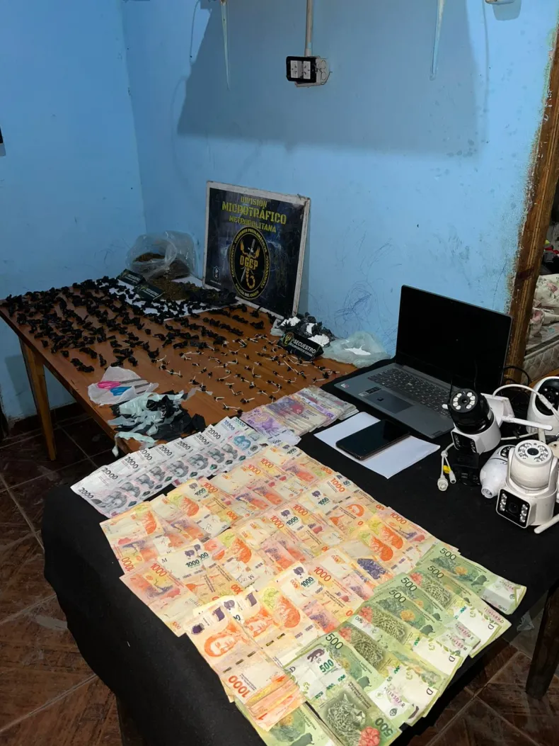 Además, se secuestraron $129.000 en efectivo, una notebook, tres cámaras de seguridad, un teléfono celular, tijeras, recortes de polietileno y 29 cartuchos calibre .22 mm sin percutar.