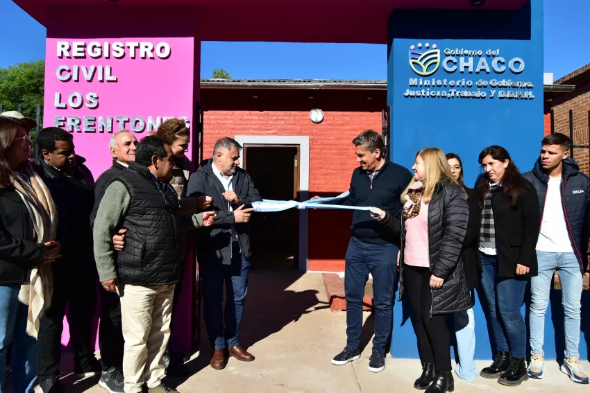 En el marco del compromiso del Gobierno Provincial con la mejora de los servicios públicos y la recuperación de espacios institucionales, el gobernador Leandro Zdero, acompañado por el ministro de Gobierno, Justicia, Trabajo y Derechos Humanos, Jorge Gómez, inauguró este miércoles la refacción integral del Registro Civil de Los Frentones. Esta dependencia brinda atención a más de 25.000 personas, tanto de la localidad como de zonas rurales y aledañas.