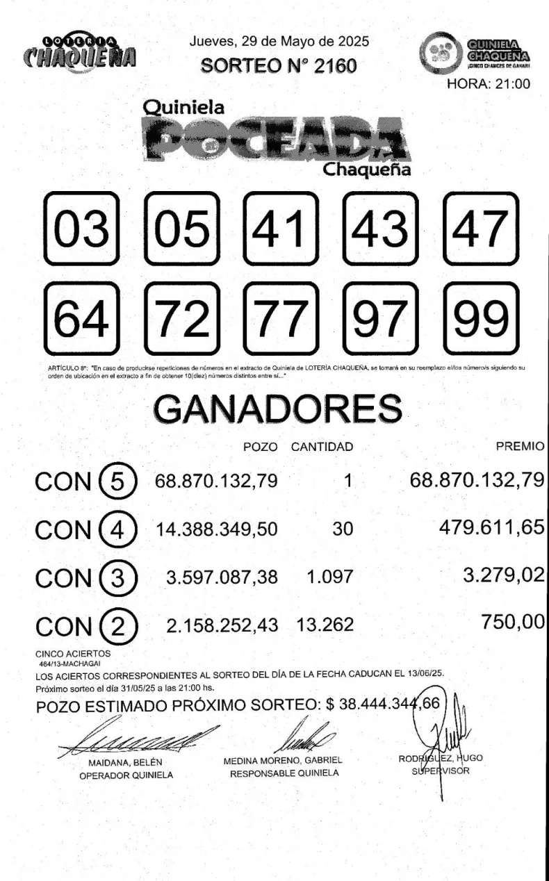 Es preciso remarcar que, los aciertos del sorteo N° 2160 caducan el 13 de junio, motivo por el cual, los jugadores deberán chequear sus cartones antes de esa fecha para poder recibir su premio.