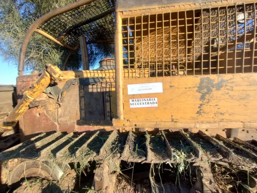 En los lugares inspeccionados se encontraron maquinarias en plena actividad de desmonte. Se trataba de dos topadoras Caterpillar que se encontraban trabajando en predio utilizando cadenas.
