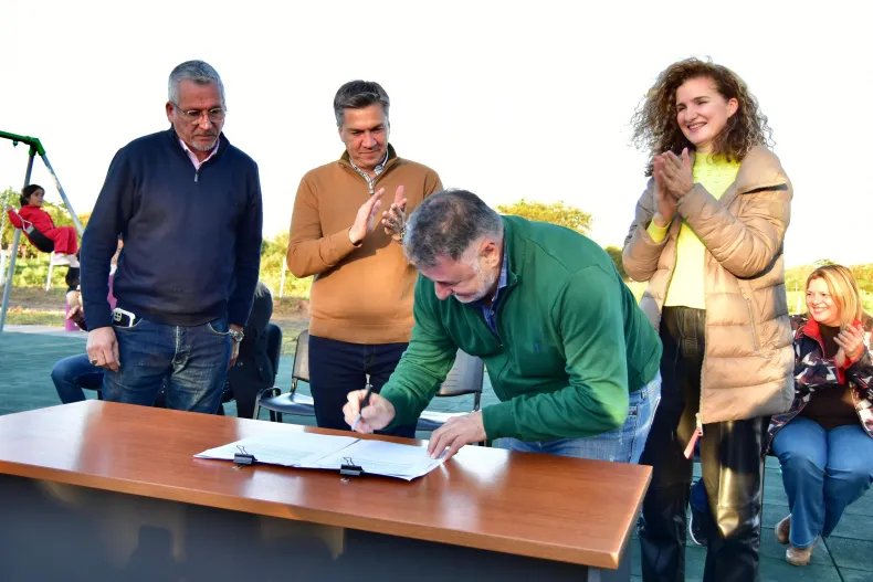El gobernador Leandro Zdero, junto al ministro de Gobierno, Jorge Gómez y al intendente de Concepción del Bermejo, Raúl Maldonado, inauguró ayer la Plaza de las Infancias. En ese contexto, firmaron también un convenio para refacción, ampliación y mejora del Registro Civil local y, a través de Fundación Soy Chaco, el mandatario entregó pintura para una parroquia local y kits de huerta y mantenimiento de jardinería para instituciones educativas.