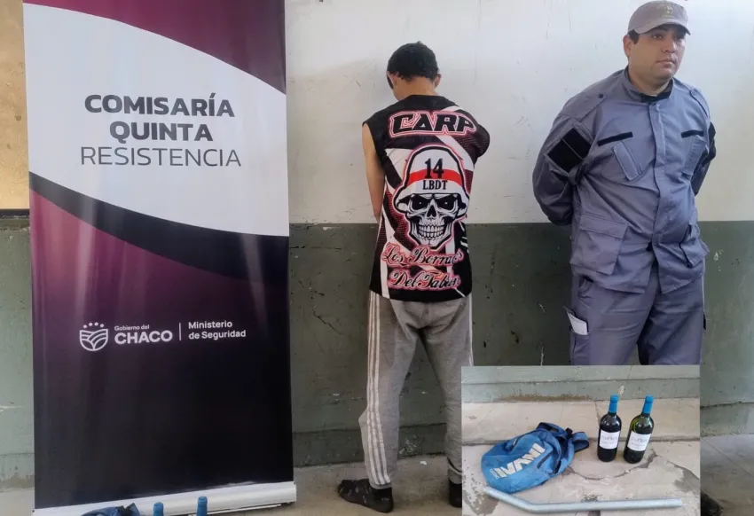 Gracias a un rápido despliegue, lograron ubicar y aprehender al sospechoso en inmediaciones de Av. Edison al 1800, logrando además el secuestro de dos botellas de vino y el caño utilizado para la amenaza.