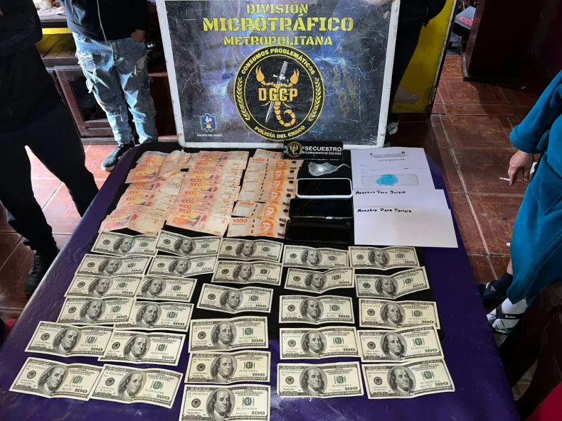 El primero de los allanamientos fue en Puerto Vilelas, en un domicilio ubicado sobre calle Democracia, donde incautaron 2.800 dólares, 37.000 pesos argentinos, varios teléfonos celulares, y un envoltorio de cocaína con un peso de 1,2 gramos. Allí fueron detenidas A.O. de 59 años y V.N.L. de 36, ambas comerciantes.