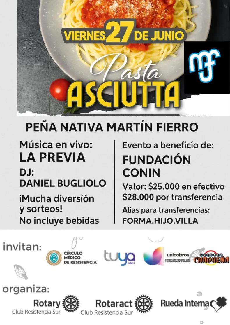 Una noche de pastas y solidaridad a beneficio de la Fundación CONIN Barranqueras