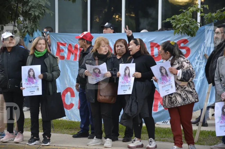 Al frente del Juzgado Federal de Resistencia, unas decenas de manifestantes se reunieron para mostrar su rechazo al fallo de la Corte Suprema que derivó en una condena a la ex mandataria por la "Causa Vialidad".