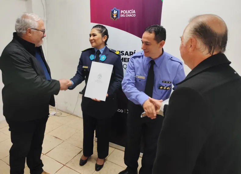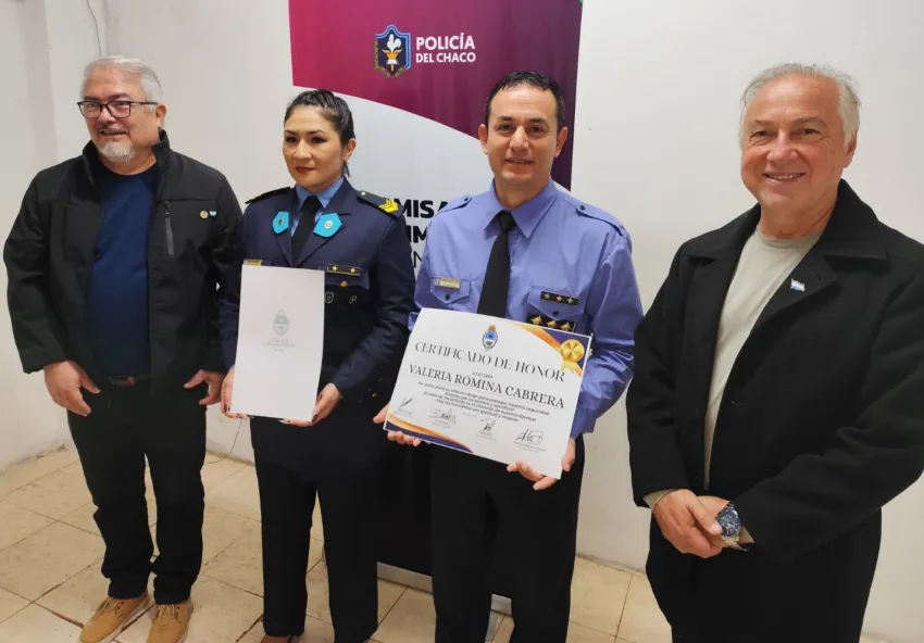 El sábado por la mañana en Barranqueras, los diputados Samuel Vargas y Carlos Salom entregaron un reconocimiento legislativo junto al jefe de la unidad, Comisario Principal Cristian Leandro Gercel, dirigido a la Cabo Primero Valeria Romina Cabrera.
