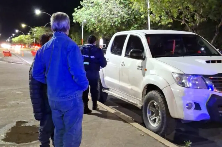 Un conductor que circulaba a alta velocidad por la avenida Sarmiento, en inmediaciones del Parque de la Democracia, fue interceptado por personal de Tránsito Municipal luego de embestir conos y canalizadores de prevención. El hecho ocurrió el domingo por la noche y el hombre iba acompañado por un menor de edad a bordo de una camioneta Toyota Hilux blanca.
