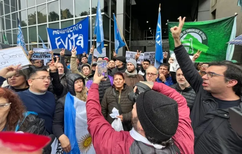 Unas 150 personas se movilizaron desde la sede del PJ hasta el Juzgado Federal, con presencia de sindicatos y organizaciones sociales.