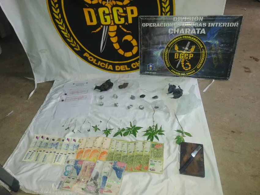 El segundo procedimiento tuvo lugar sobre una calle pública del mismo barrio. En el lugar fue detenido E.A.G, de 34 años. Se le incautaron varios envoltorios con marihuana, totalizando 34,86 gramos, además de 2,28 gramos de semillas de cannabis, 11 plantines de diferentes tamaños y $18.350 en efectivo.
