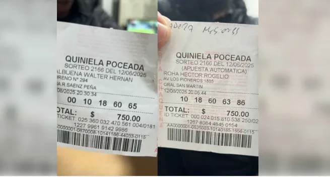 Un vecino de General San Martín y otro de Roque Sáenz Peña pasaron a hacer efectivo el millonario premio que obtuvieron durante el sorteo de la Quiniela Poceada del pasado 12 de junio, ocasión en que fueron los únicos en sumar los cinco aciertos.