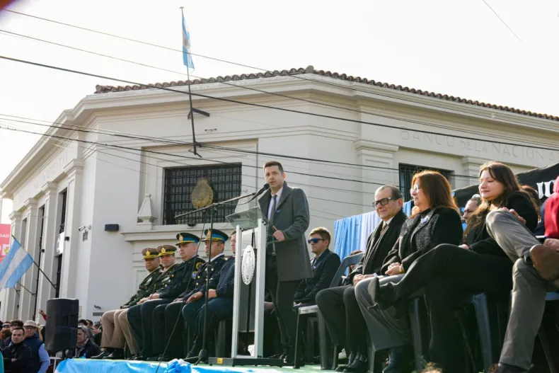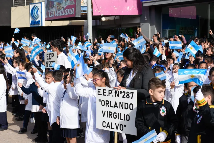 La ceremonia tuvo lugar sobre calle 12 y 7 del centro de la ciudad, y fue encabezada por el intendente Bruno Cipolini, quien destacó el valor del compromiso con los símbolos nacionales. "La grandeza de la patria vive en cada uno de nosotros. Felicito a los más chiquitos por este compromiso con la bandera más hermosa de todas, la celeste y blanca", expresó durante su discurso.