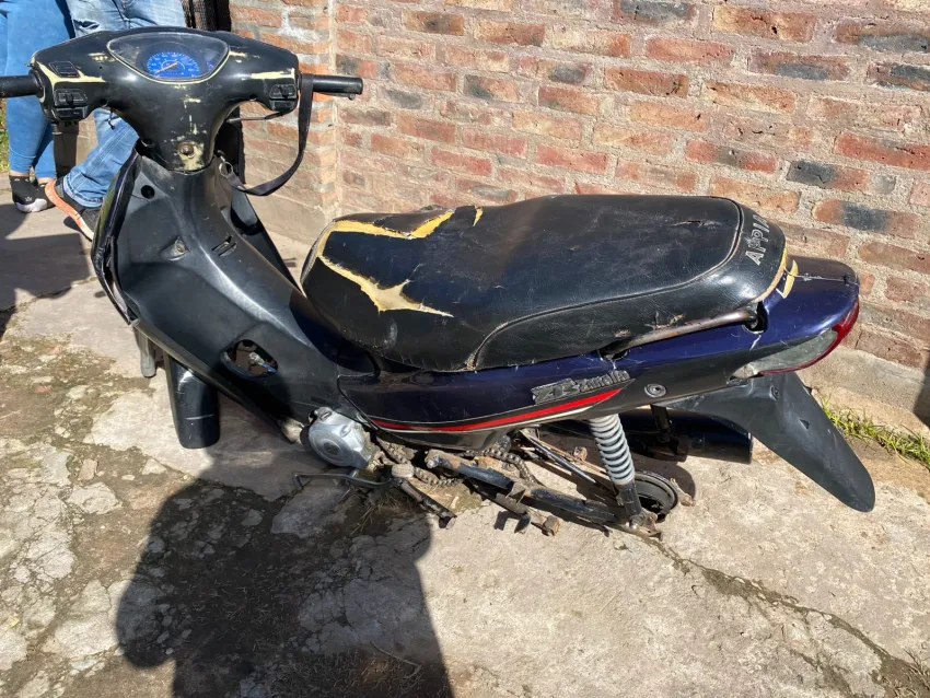 Al inspeccionar el patio, los uniformados constataron la presencia de una motocicleta marca Zanella ZB de 110cc, color azul, sin espejos, asiento deteriorado y sin ruedas, en evidente mal estado de conservación.