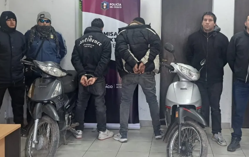 Dos hombres fueron detenidos este lunes en Resistencia luego de que la Policía recuperara una motocicleta robada, tras un operativo realizado en inmediaciones del barrio Don Santiago. El hecho se originó por la denuncia radicada en la comisaría Cuarta por una mujer, quien reportó el robo de su moto 110 cc del Centro de Salud Villa Barberán, ubicado en calles Lestani y Paso de la Patria.