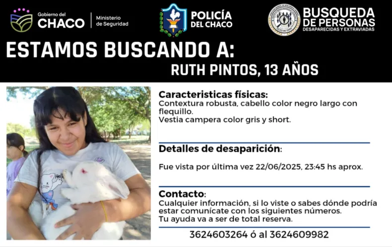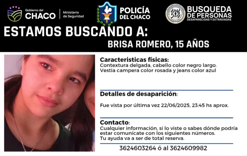 Continúa la búsqueda de Brisa Romero y Ruth Pintos. El operativo está a cargo de la Fiscalía N°3, con apoyo de distintas unidades policiales, el Sistema Federal de Búsqueda de Personas (SIFEBU), organismos provinciales y la ONG Missing Children.