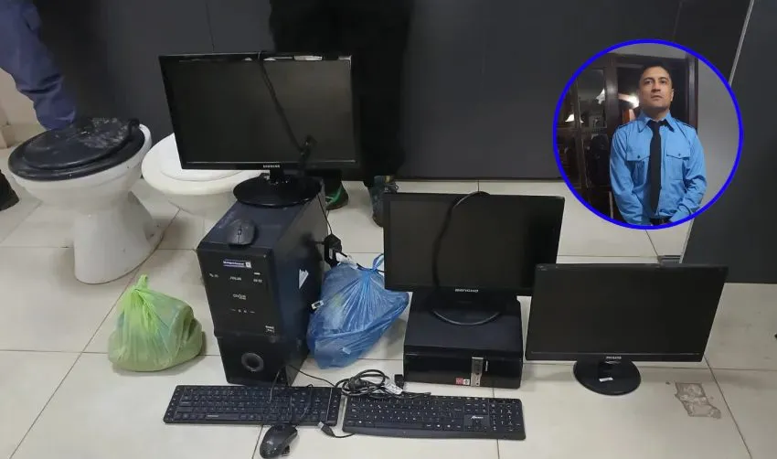 Entre los objetos sustraídos se encontraban dos inodoros, tres monitores de distintas marcas, dos CPU, estabilizadores, periféricos de computación, una luz de emergencia, un parlante, una bolsa con yerba suelta y una lata de leche en polvo.