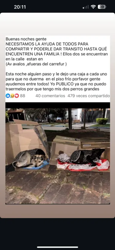 La persona que posteó el mismo, comenta que: "Una persona pasó y les dejó unas cajas de cartón a cada uno para que no duerman en el piso. Yo acerco la información para que alguien pueda darles un refugio, ya que yo no puedo llevármelo", concluye la publicación.