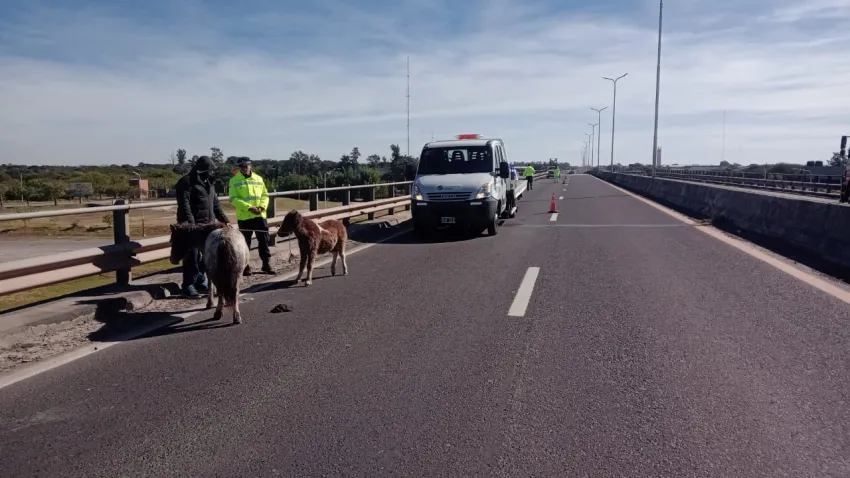 Retiran dos ponys sueltos en plena Ruta 16 durante operativo vial