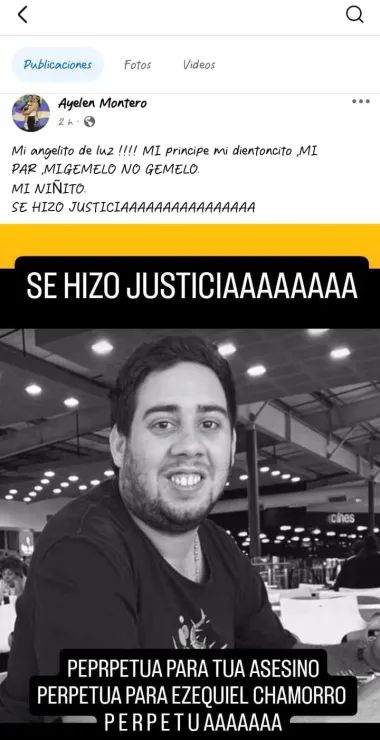 En dicho posteo, subió una imagen de su hermano con la siguiente descripción: "Se hizo justicia. Perpetua para tu asesino, Ezequiel Chamorro", escribió.