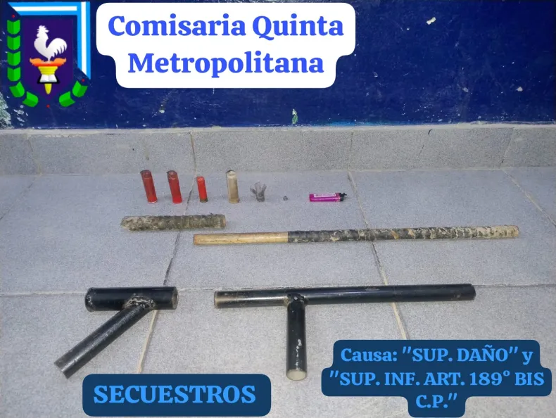 El hecho fue caratulado como "Supuesto Daño" y "Supuesta Infracción al Art. 189° Bis del Código Penal", en relación con la tenencia ilegal de armas de fuego. Interviene el Equipo Fiscal N° 2 a cargo de la Dra. Ana González de Pacce, quien dispuso la notificación de aprehensión e identificación de los involucrados.
