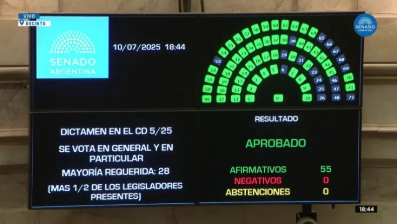 El Senado de la Nación sancionó este jueves por unanimidad la Ley de Emergencia en Discapacidad, que establece una serie de medidas urgentes para el sector hasta 2027. El proyecto fue aprobado con 55 votos afirmativos, sin abstenciones ni votos en contra. También se convirtió en ley el Fondo de Emergencia para las inundaciones en Bahía Blanca.