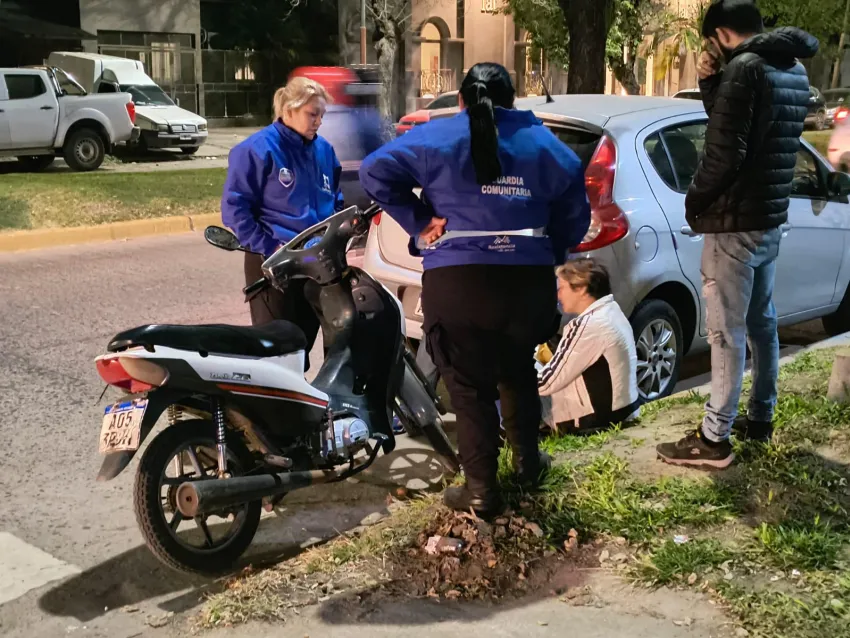 Personal de la Guardia Comunitaria intervino el domingo por la noche en un incidente ocurrido en la intersección de avenida Italia y Laprida de la ciudad de Resistencia, donde una motociclista perdió el control de su rodado y cayó al suelo.