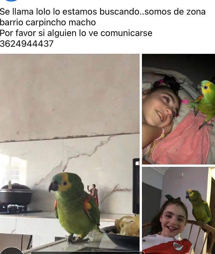 Una familia del barrio Carpincho Macho, en Resistencia, atraviesa momentos de profunda angustia tras la desaparición de "Lolo", un loro de la especie Amazonas que cumple una función terapéutica en la vida de Guillermina, una niña que padece Síndrome de Angelman, un trastorno neurológico que afecta el desarrollo, la motricidad y la comunicación.