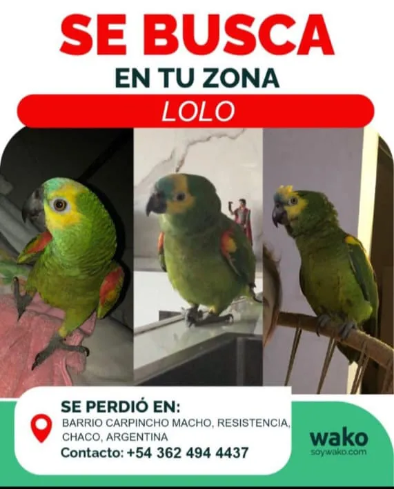 El lorito llamado "Lolo" se encuentra perdido hace aproximadamente 10 días en la ciudad de Resistencia.