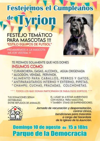 El mismo premiará a la mascota mejor vestida. Además, todos los donadores participarán de una serie de sorteos durante la jornada que será el domingo 10 de agosto de 15 a 18 horas en el Parque de la Democracia.