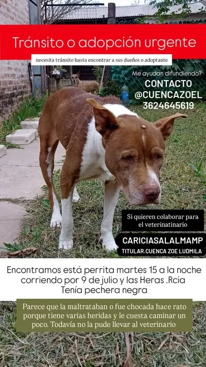 Rescataron a una perrita herida en Resistencia y buscan a sus dueños o adoptante