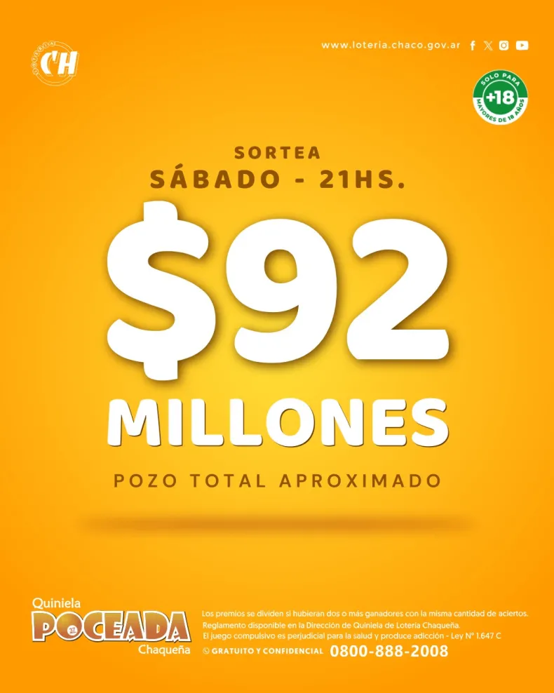 El pozo estimado para el próximo sorteo, que se realizará el sábado 19 de julio a las 21:00, asciende a $ 92.112.368,86.