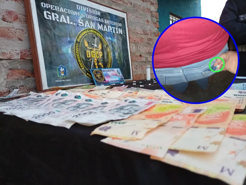 Además, se incautó un teléfono celular marca Samsung, una tijera con restos de sustancia, un recorte plástico con vestigios de cocaína, bolsas de polietileno con recortes faltantes, y la suma de $82.550 pesos en efectivo.