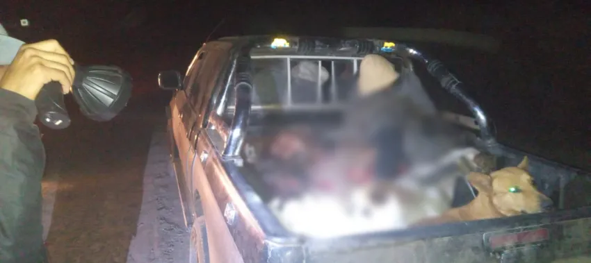 Anoche alrededor de 4.30, en el Camino Alto Los Gansos demoraron el paso de una camioneta Mitsubishi en el que viajaban seis hombres. Al revisar la caja del vehículo constataron que tenían varios animales recientemente faenados, y transportados sin respetar las medidas de bioseguridad.
