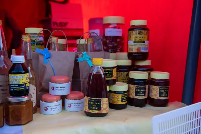 Desde la mañana del domingo los productores apícolas estuvieron en plaza San Martín exhibiendo sus productos, distintos derivados y variedades de miel. Además, hubo charlas, capacitaciones y gastronomía apícola.