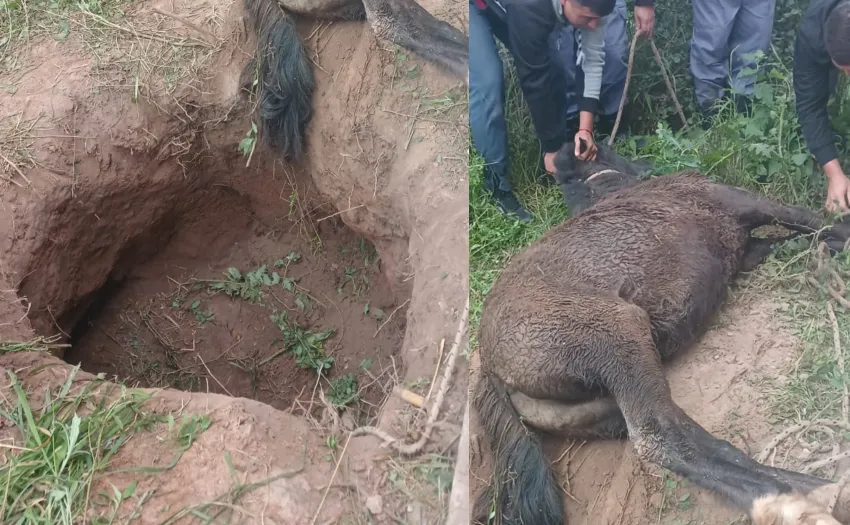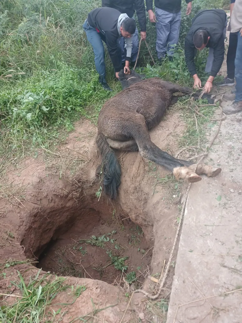 Rescataron a un potrillo que cayó en un pozo de un metro y medio de profundidad