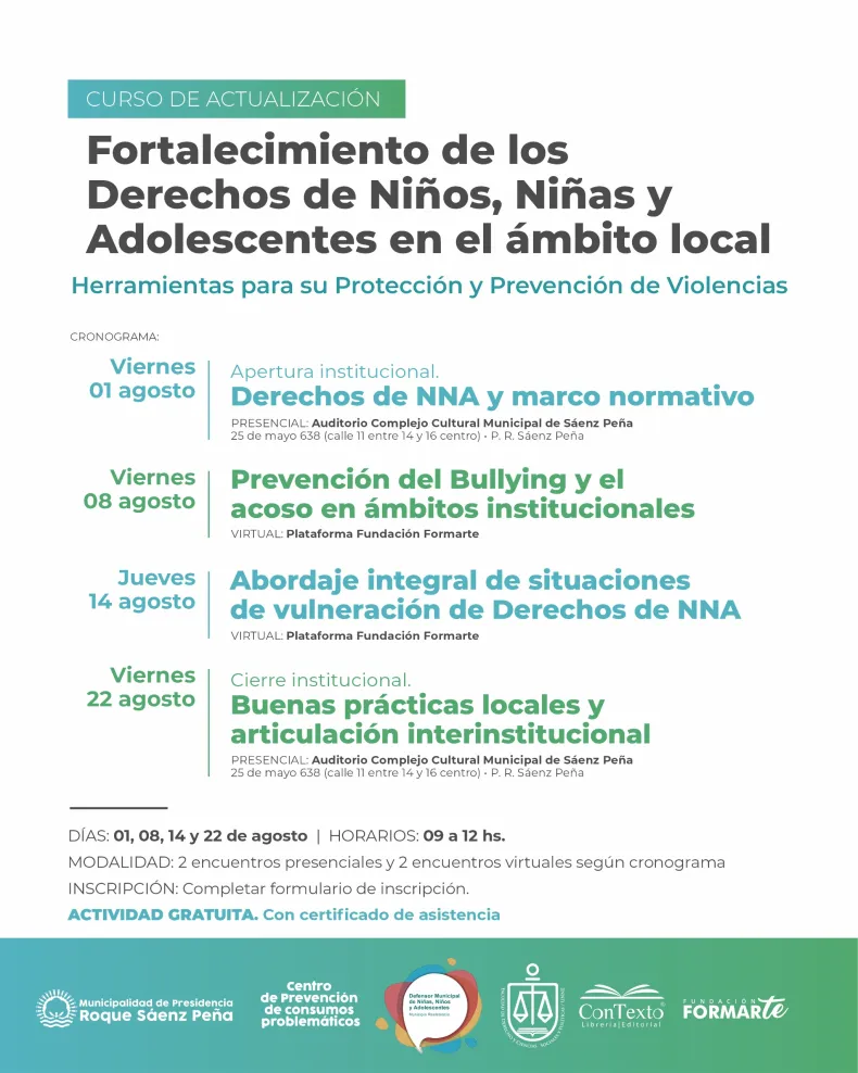 La capacitación está dirigida a profesionales, operadores, educadores y toda persona interesada en la protección de derechos de NNA. La misma es totalmente gratuita y se entregarán certificados de asistencia.
