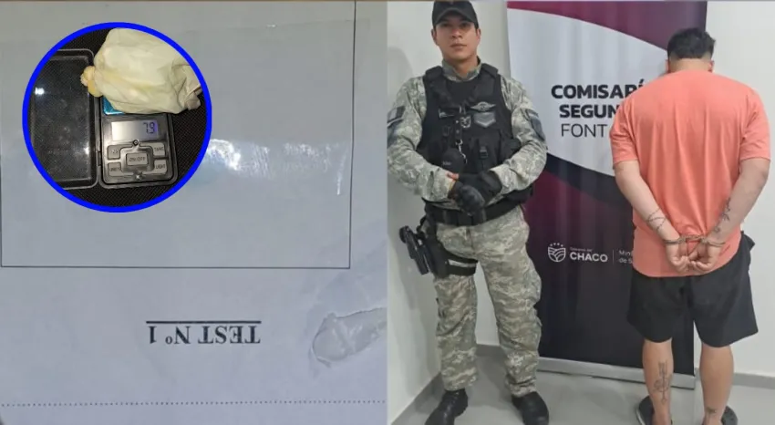 El detenido fue trasladado a la comisaría jurisdiccional, donde fue notificado de su aprehensión tanto por la causa pendiente como por una nueva imputación por "Supuesta Infracción a la Ley N° 23.737 de Estupefacientes".