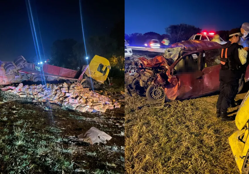 En la tarde del sábado ocurrió un grave accidente en la Ruta Nacional N° 11 al kilómetro 1017 cerca de Colonia Benítez. Los involucrados fueron un camión con acoplado Volkswagen Iveco que transportaba azúcar y un auto Renault Megane de color bordó.