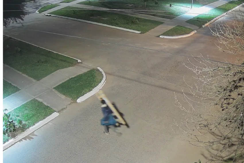 El pasado 31 de julio, a las 03:35 horas, personal del Centro de Monitoreo detectó a un sujeto trasladando una escalera de gran tamaño por calle 0 y 25 del barrio Santa Teresita, en un horario no habitual para ese tipo de actividad.