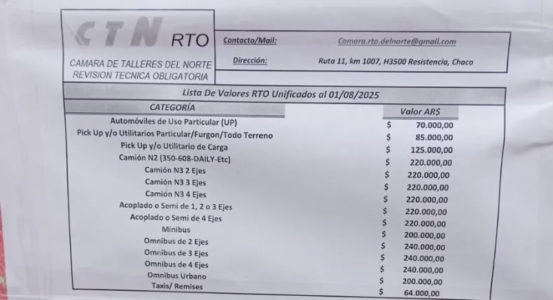 La Verificación Técnica Vehicular (VTV) en Chaco volvió a registrar un aumento. Luego del último ajuste en mayo, agosto también tuvo una suba de aproximadamente el 9% en el valor del trámite obligatorio, según confirmaron desde uno de los talleres habilitados en Resistencia.