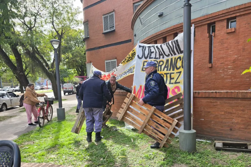 Este lunes fue noticia el reclamo de Carlos Hernán Maximiliano Zambelli, quién apuntó contra la jueza María Eugenia Barranco Cortés. El sujeto sostuvo su reclamo colocando pancartas que tildaban a la magistrada de "mafiosa" en las paredes del edificio ubicado en la intersección de Av. Sarmiento y Av. Laprida. Las mismas fueron retiradas horas más tarde por la Policía.