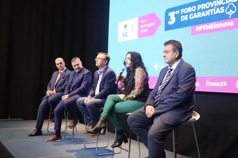La presidente de la Legislatura, Carmen Delgado, junto a sus pares Dorys Arkwright y Carlos Salom, participaron de la 1ª sesión del Foro de la Región Litoral y 3º Foro Provincial de Garantías. Se realizó en el Centro de Convenciones Gala, con el objetivo de fortalecer a las pequeñas y medianas empresas en el acceso a herramientas financieras.
